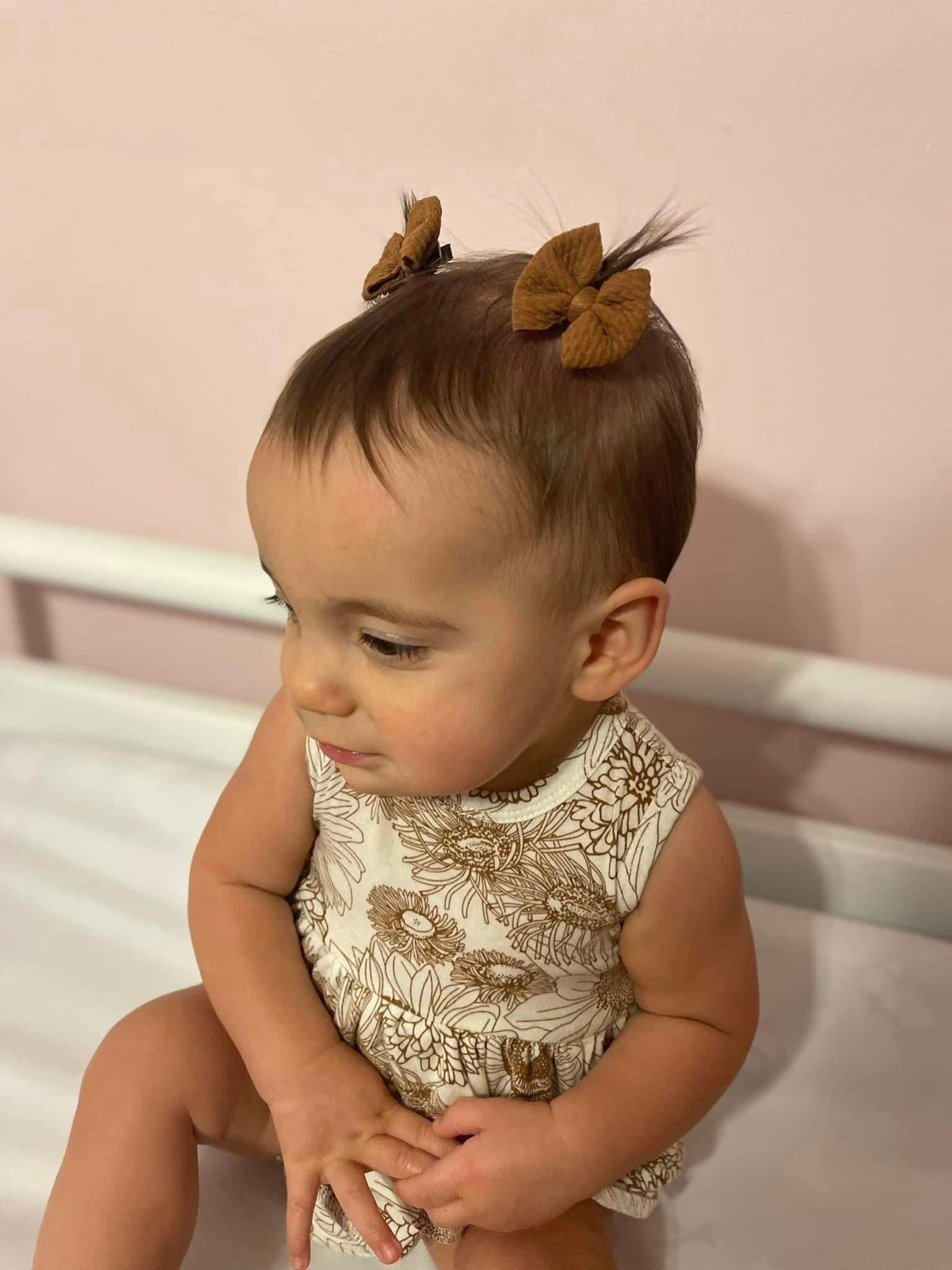 Our piggie bows are hand tied using the no flap method. Our piggies come in a pair of two bows and offered with fIve different size options. Big piggies, small piggies, mini piggies, micro piggies, or teeny piggies